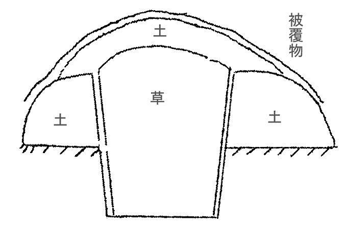 足の場合は1寸程度の長さに細切する。1日作業で、埋草が終了しない時は、降雨を予想される場合は覆いを怠らないようにする。