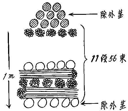 ⑤ 棧積: 半日地干し、午後結束して夕方結束後桟積した。その後8日~11日朝解いて地干し、夕刻積、13日は積のまま、14日本積。