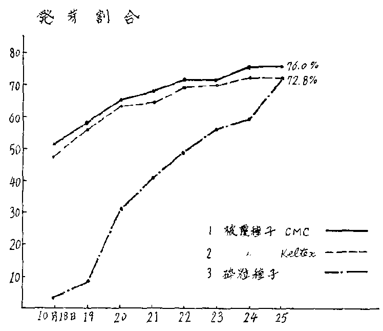 | 2 | 被覆種子 発芽粒数 | (発芽始) | 119 | 140 | 159 | 161 | 17.4 | 175 | 181 | 182 |