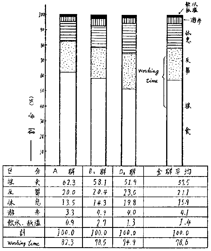 註 各群3頭 2日間、1日15時間、計5400分調査、30秒間隔方式による記録