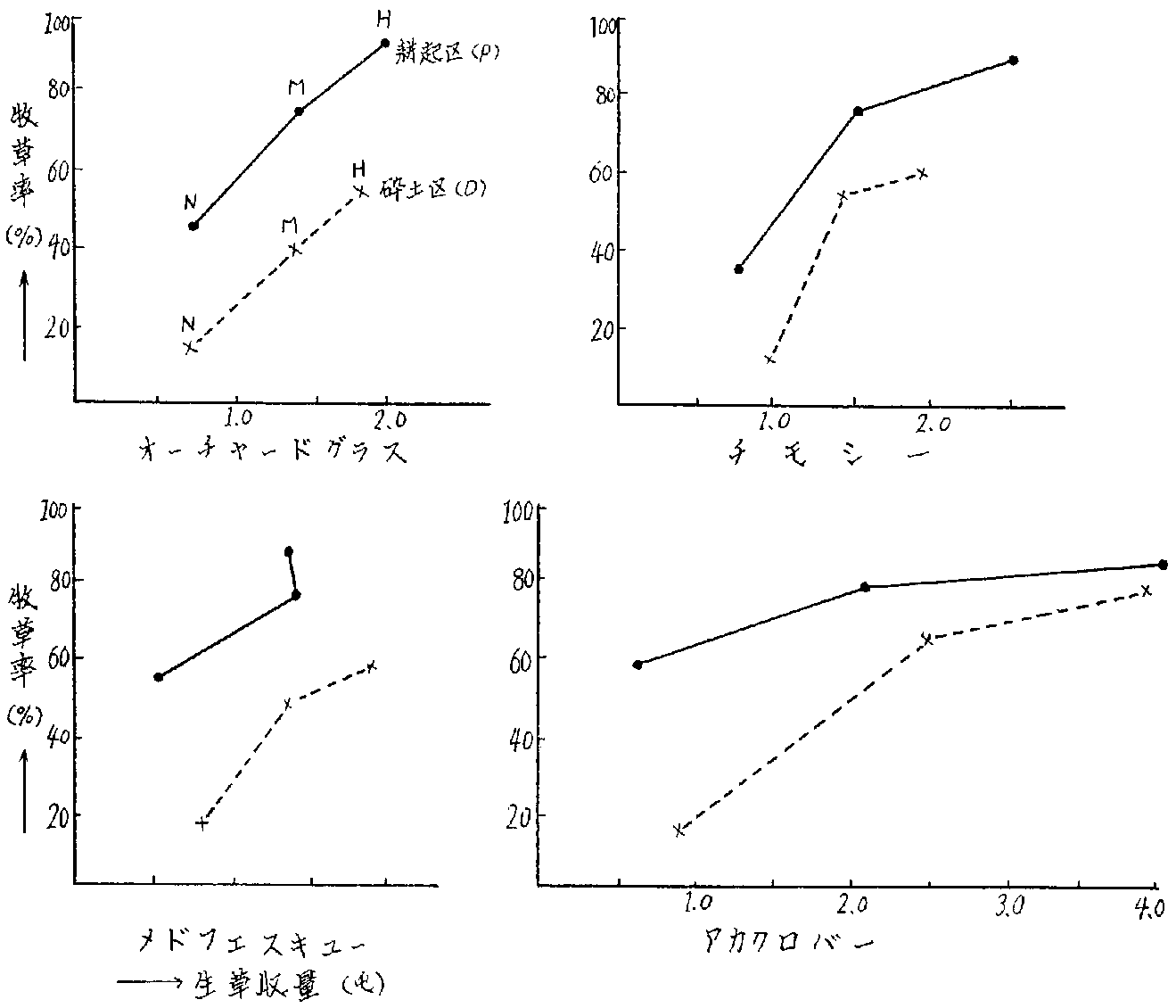 第3には播種草種である。肥沃地での集約的な管理に適応性を示す草種と痩草地での比較的粗放な管理にも耐える草種とが指摘される。