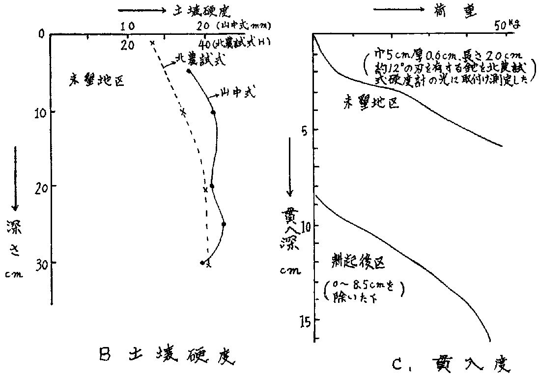 また、従来不満足であった石灰の攪入は深く耕起した土壌のほとんど全層に略均一に混入し得る性態を持ち実用に適することを確認した。