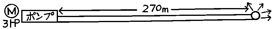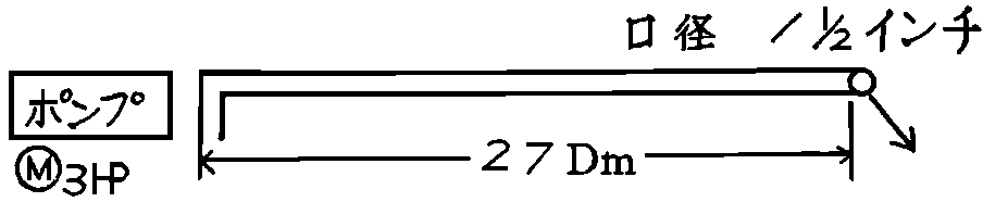 3HPのモートルを利用し各供試機がそれぞれ、同時に尿溜にサクションホースを投入し、(汲上揚程56~230㎝)ポンプアップを行い、平地270mをポリエチレンホース(径38㎜)で圧送し、末端から吐出せしめる。