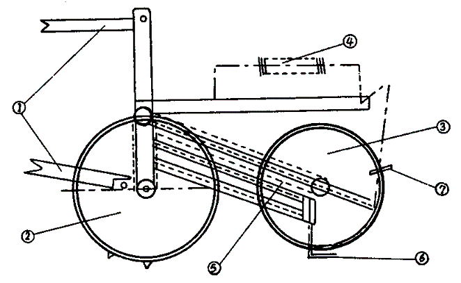 第3番目の畦は、堀取を行い、ツーポイントのシヨベルで堀上げたビート根は複列のロツトチエンコンベアーで、はさまれて、タンクに貯められる。タンク容量は、大略100kg入れで、満タンク(50m堀取)になると放出する。堀取には、30馬力級のトラクターが必要である。本機には、タンクの開閉及び堀取刃の舵取りに補助作業人が1名必要である。