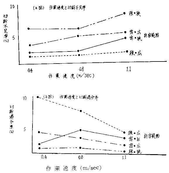 に分けて行った。なお頸葉切断機の性能は、切断の過不足の量によって決定されるので、この表現方法を次の如くきめた。