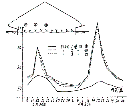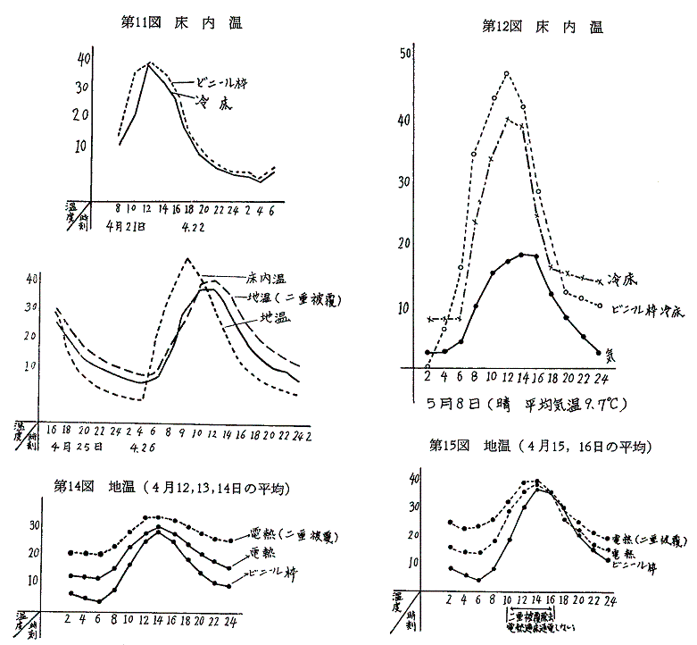 1. 床内温または地温は電熱温床より劣るが、冷床より若干勝れ、温度の経過は冷床に似る
