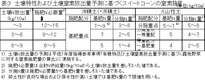 7.更に、土壌窒素肥沃度による施肥窒素節減の可能性を検討し、表3に示す。
