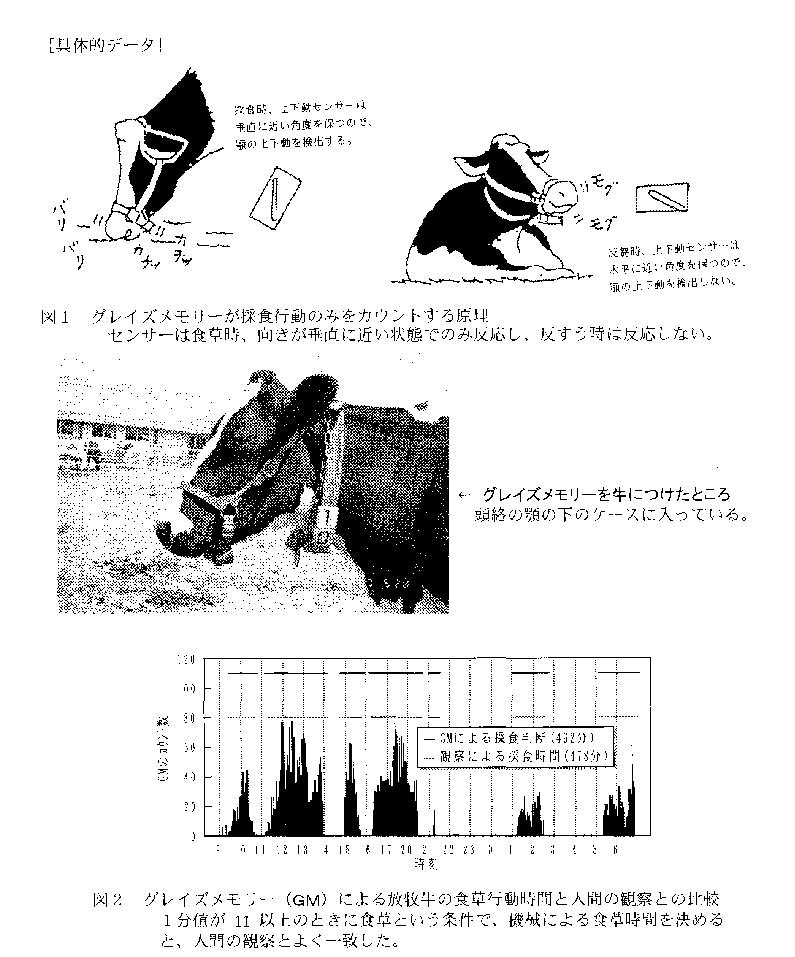 小型・軽量・安価な放牧牛の採食行動自動記録装置(グレイズメモリー) |