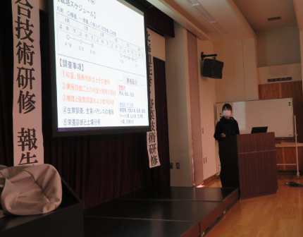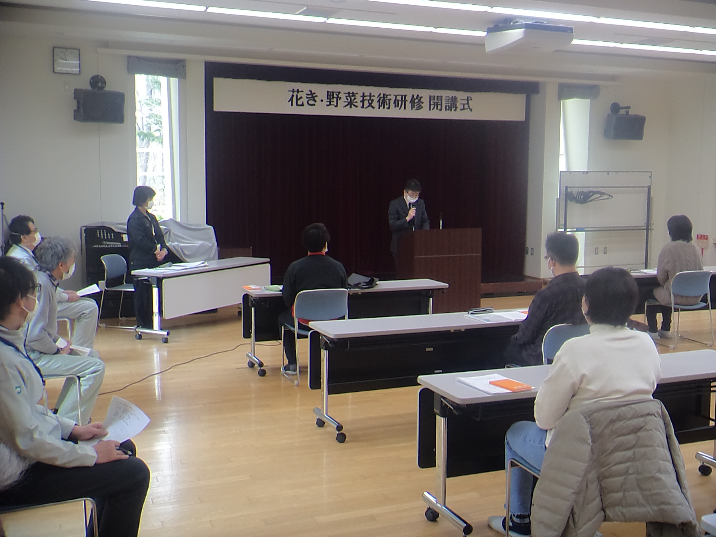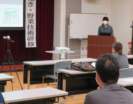 約6か月にわたり実施してきた令和3年度総合技術研修も、明日が修了式です。 今日は研修の総まとめとなる「自主栽培報告会」を実施します。