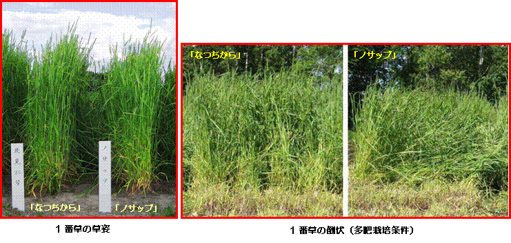 - 収量性・・・年間合計乾物収量は、「ノサップ」より多く、とくに2番草が多収です。