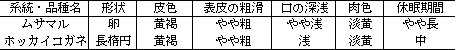 初期生育、塊茎の早期肥大性は、ともにホッカイコガネに勝ります。枯凋期はホッカイコガネ並の中晩生です。休眠期間はホッカイコガネよりやや長くなります。