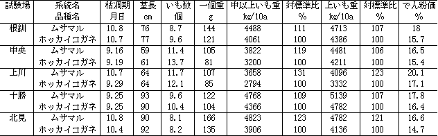 十勝農試:昭和61年~平成3年の平均。その他:昭和63年~平成3年の平均。