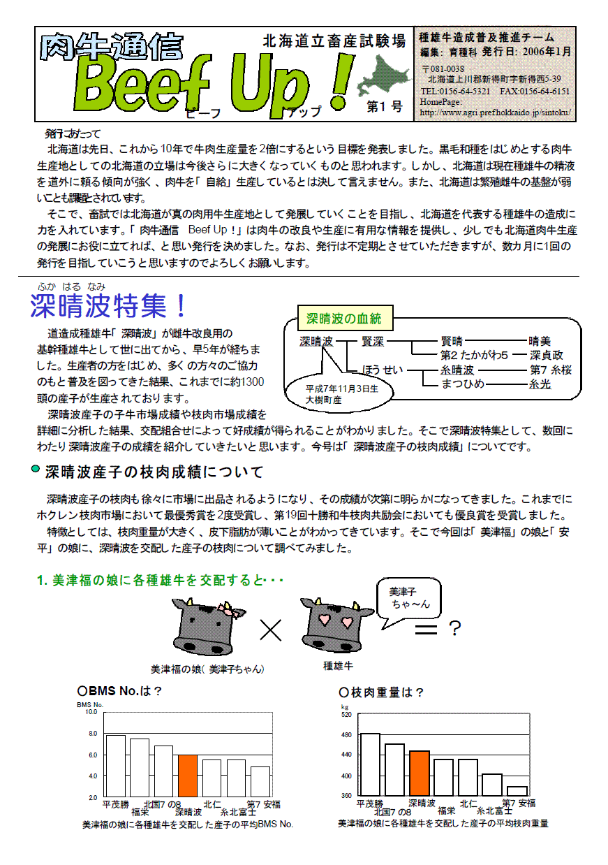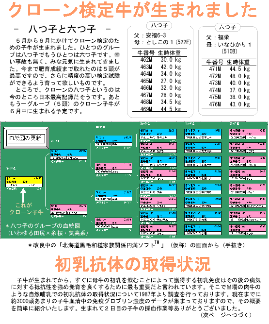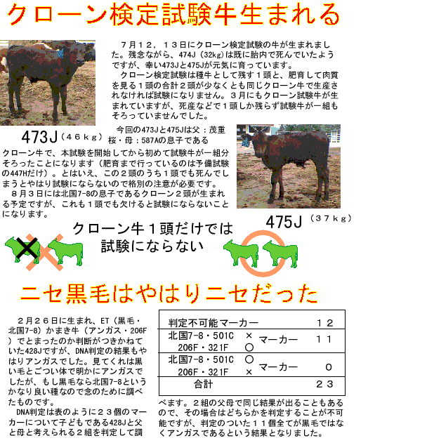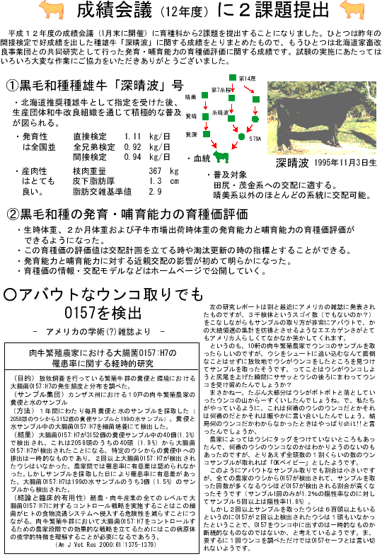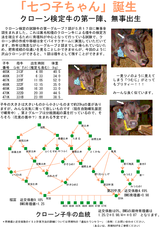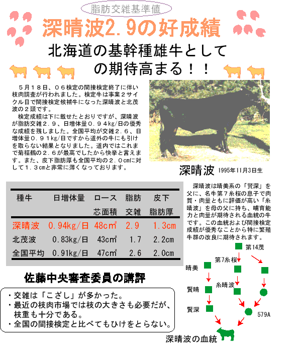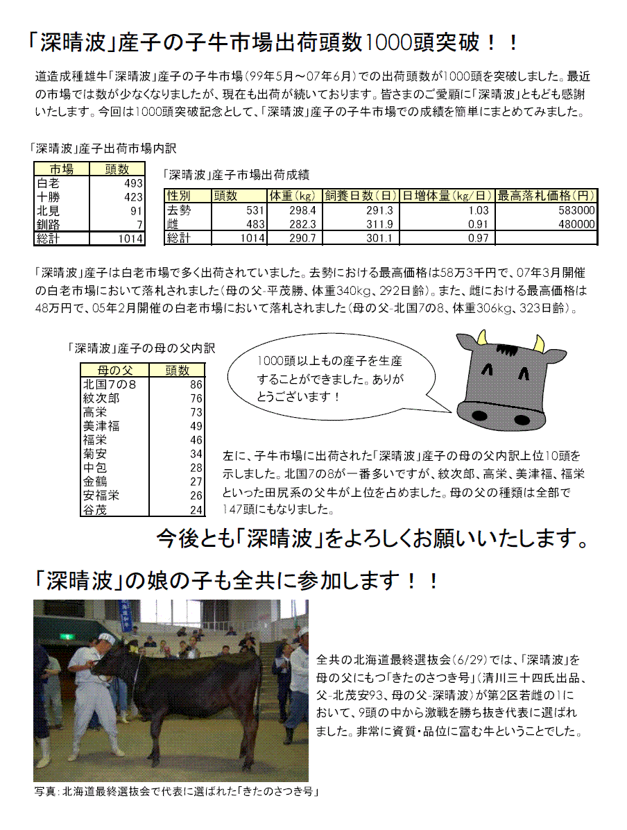 ・ 「七つ子ちゃん」誕生~クローン検定牛の第一陣、無事出生~No.122( 前半 ・ 後半 ) ・ 深晴波2.9の好成績~北海道の基幹種雄牛としての期待高まる!!~