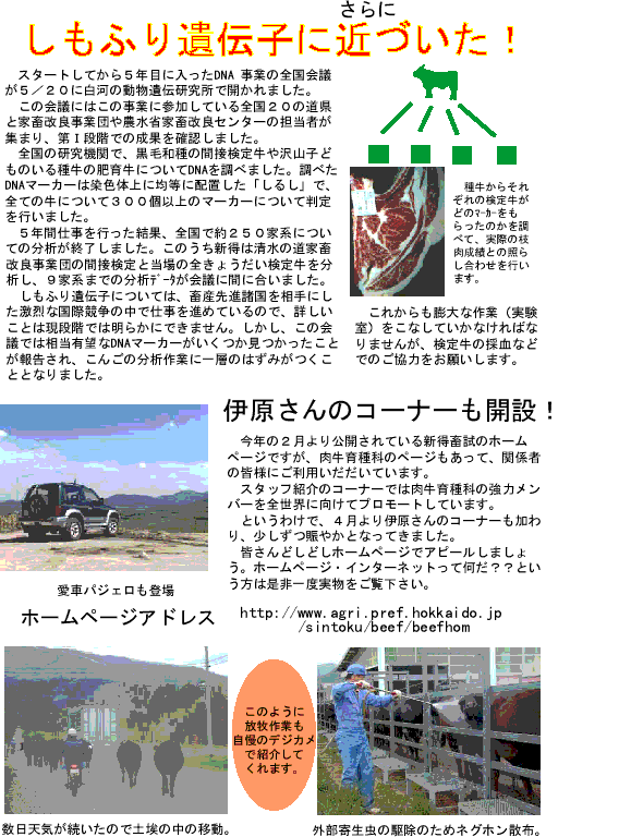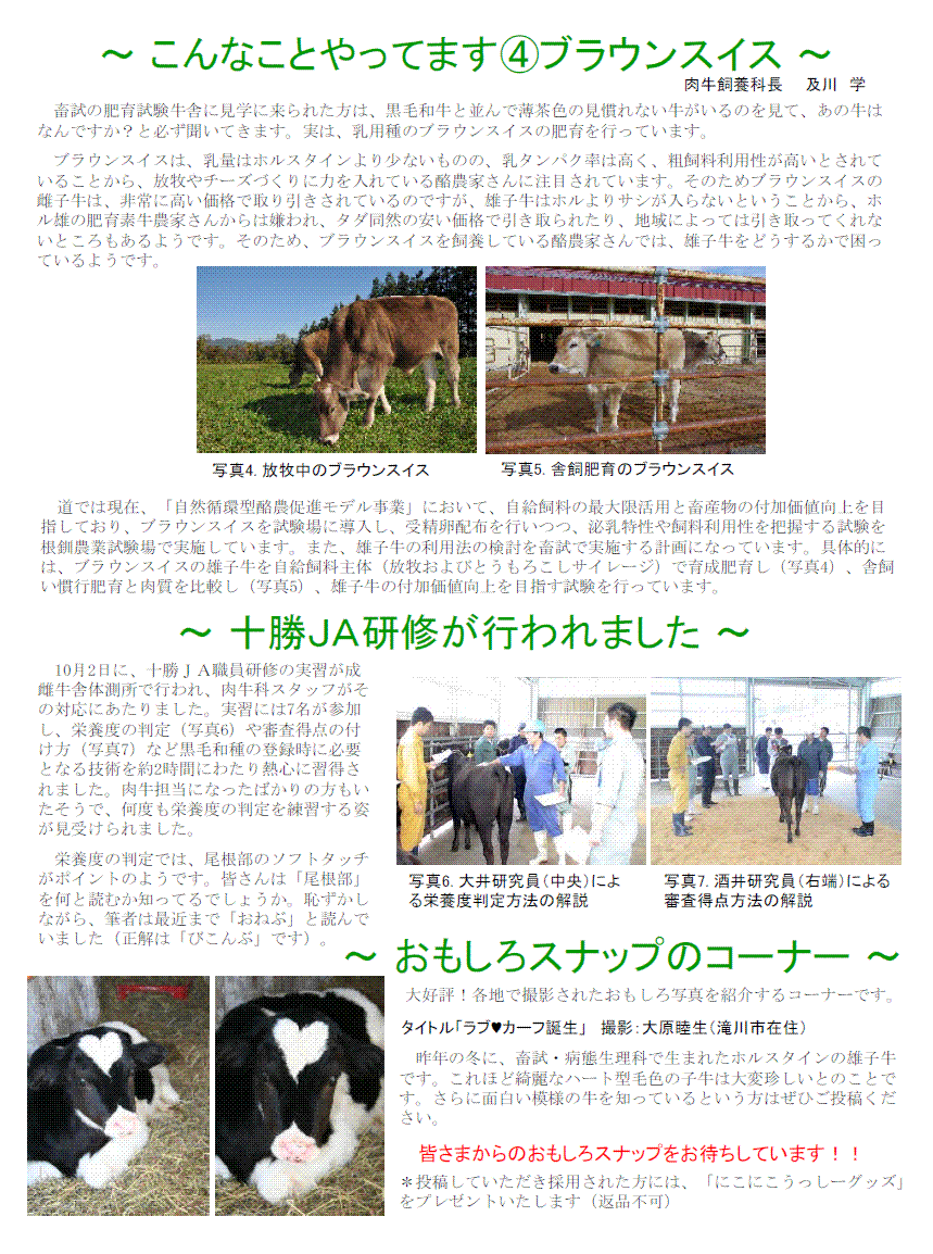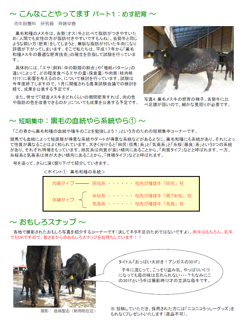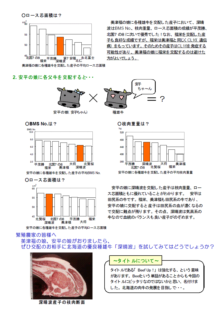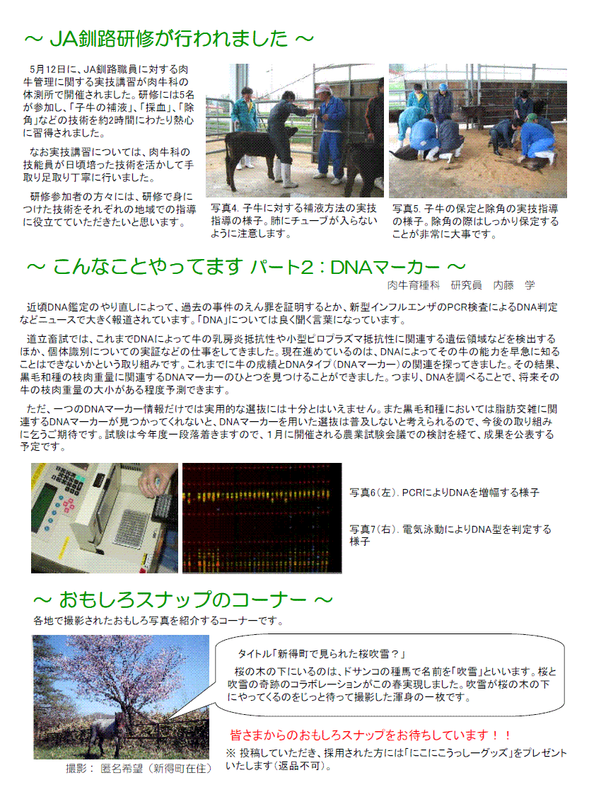 ・ 「七つ子ちゃん」誕生~クローン検定牛の第一陣、無事出生~No.122( 前半 ・ 後半 ) ・ 深晴波2.9の好成績~北海道の基幹種雄牛としての期待高まる!!~