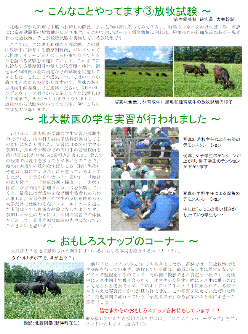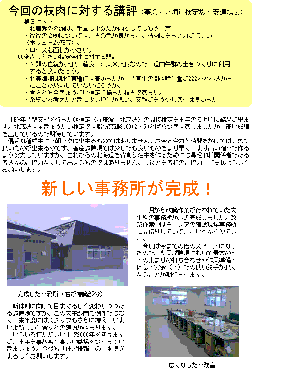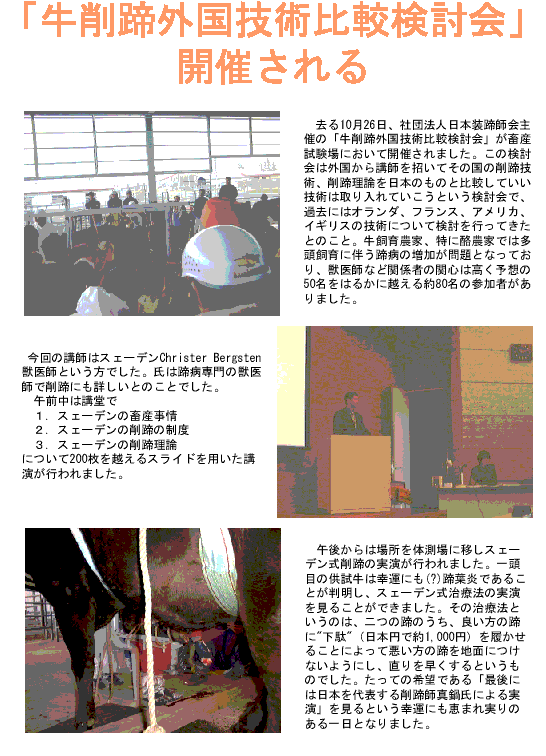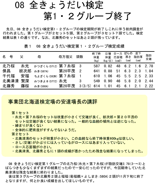 ・ 「牛削蹄外国技術比較検討会」開催されるNo.124( 前半 ・ 後半 ) ・ 北牛若丸4.0(脂肪交雑基準値)の好成績!!