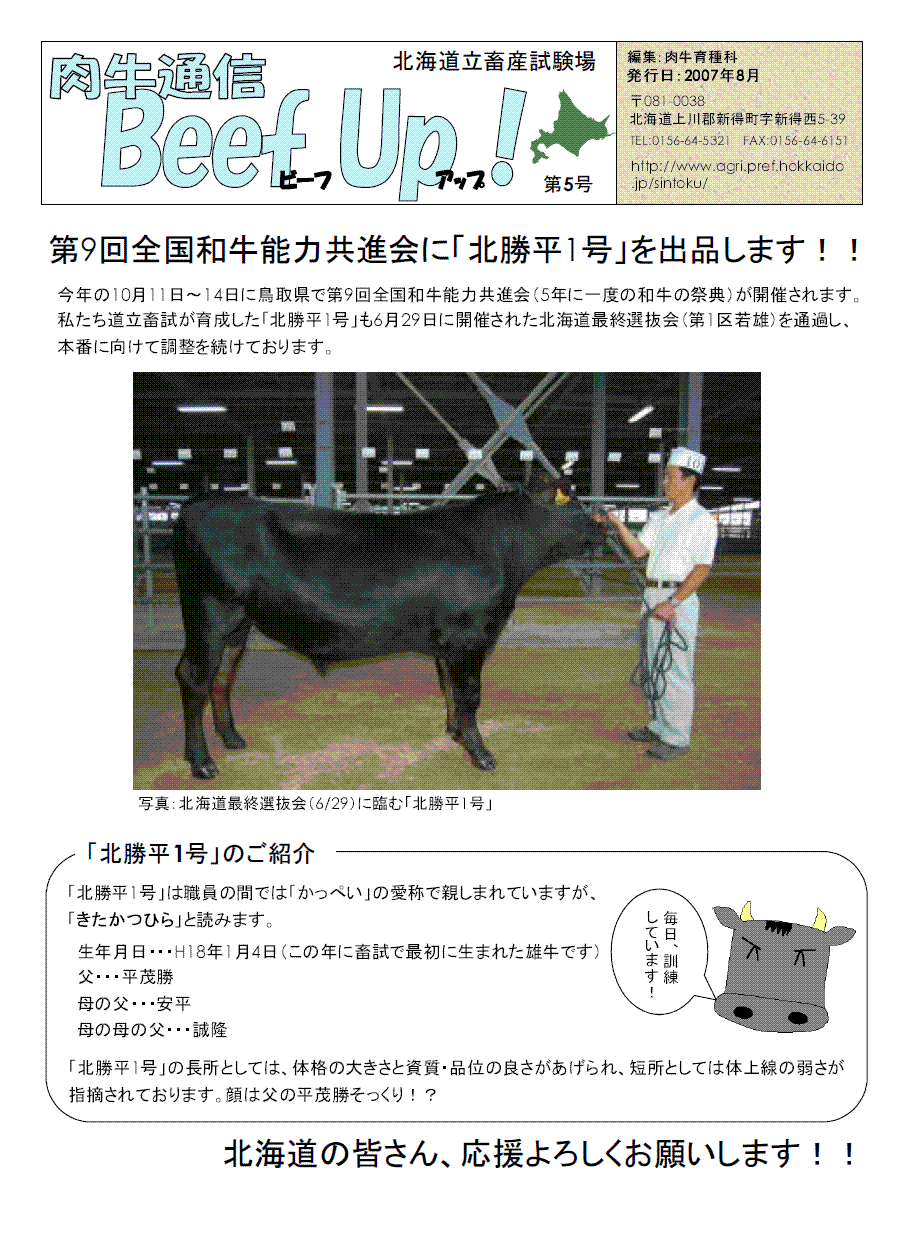 No.16( JPEG / PDF ) ・ 「勝早桜5」北海道推奨種雄牛に選定