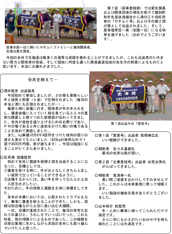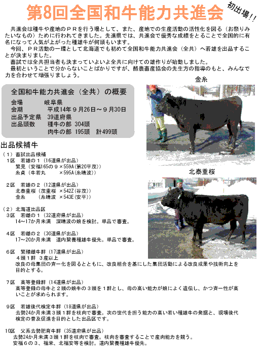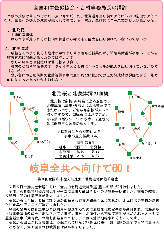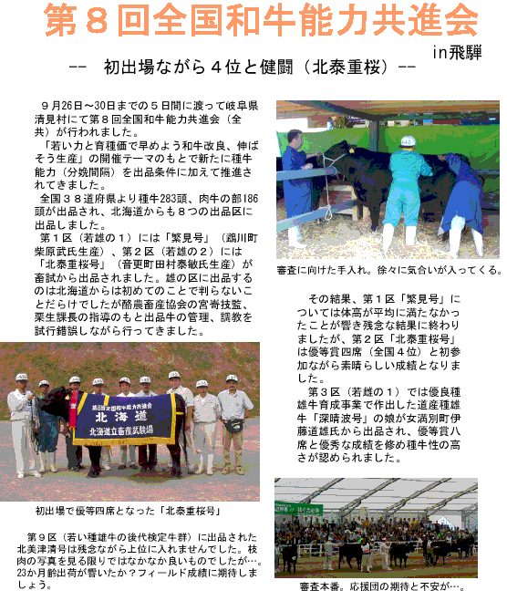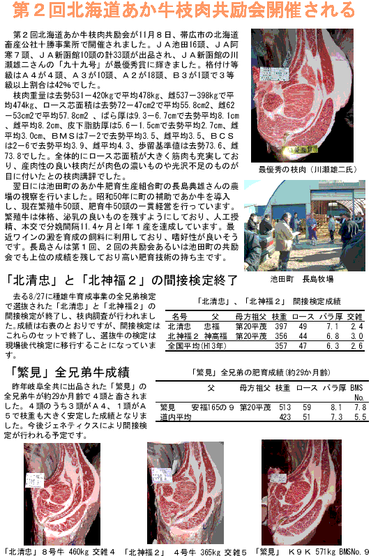 ・ あか牛はまだまだいけるNo.136( 前半 ・ 後半 ) ・ 第8回全国和牛能力共進会in飛騨 No.135( 前半 ・ 後半 ) ・ 北乃桜3.1、北美津清3.2の好成績!