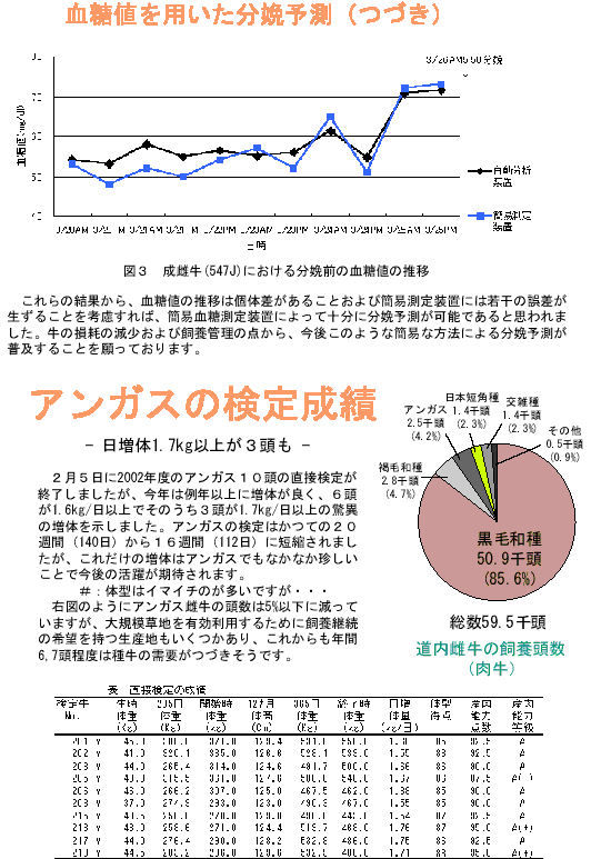 ・ 「繁見」全兄弟牛成績No.140( 前半 ・ 後半 ) ・ 血糖値を用いた分娩予測