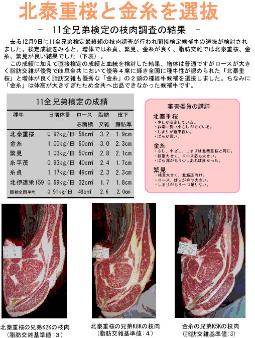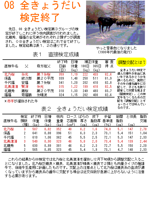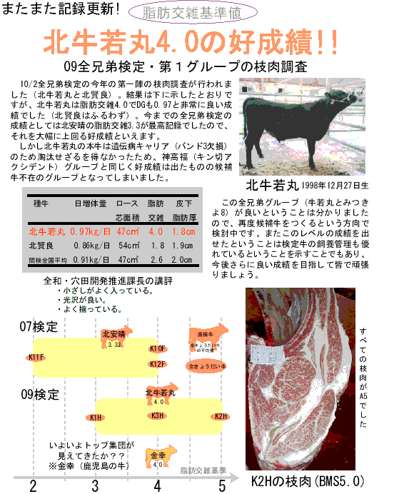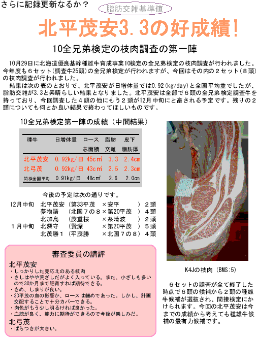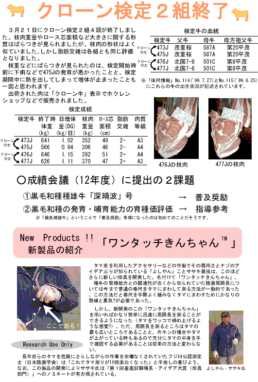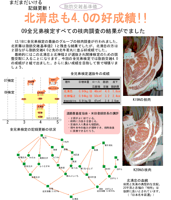 ・ 新製品の紹介「ワンタッチきんちゃん」No.126( 前半 ・ 後半 ) ・ 北清忠も脂肪交雑基準値4.0の好成績!