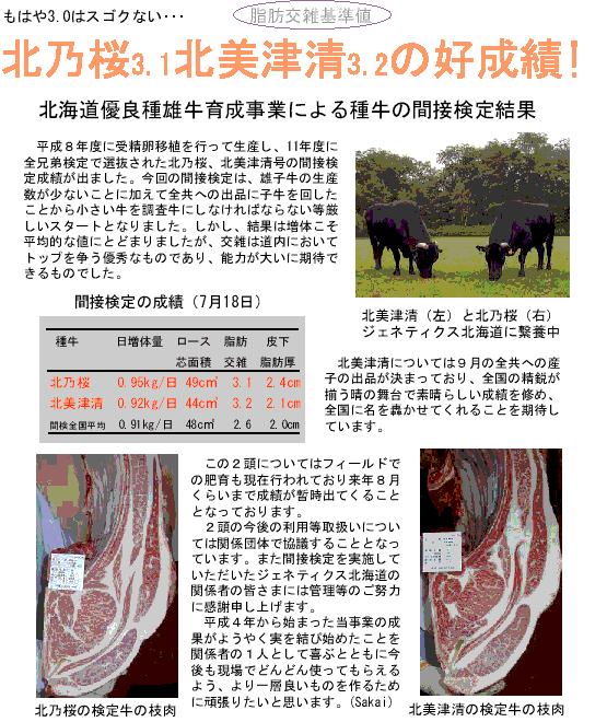 ・ 先月号では大ウソ書きましたNo.82 ・ またまた好成績!北賢桜の間接検定終了