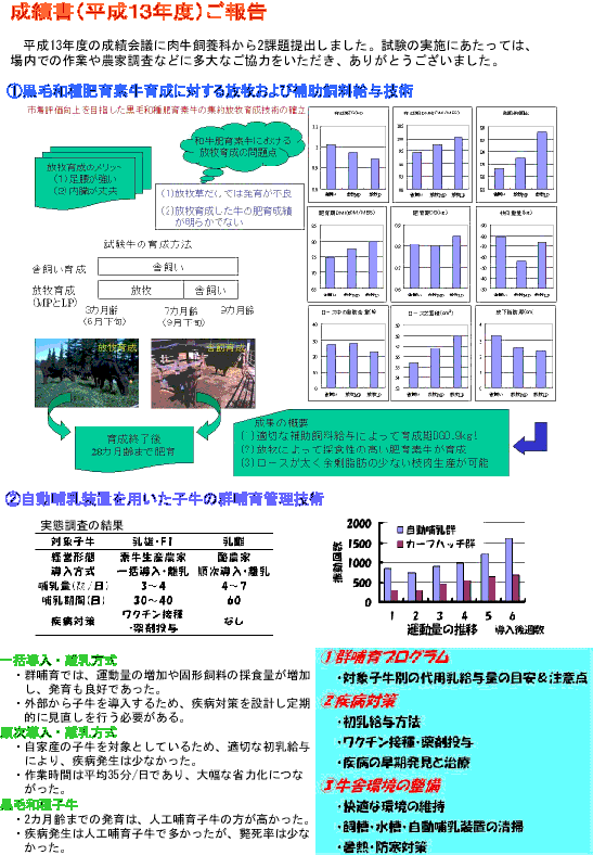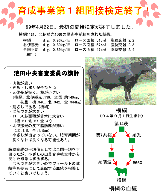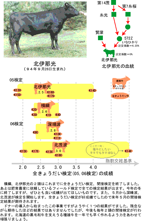 ・ 平成8年度放牧試験の紹介と進み具合No.87 ・ 横綱2.6(脂肪交雑)の好成績!