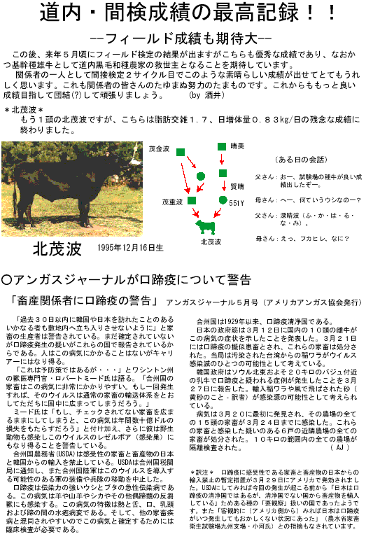 ・ アンガスジャーナルが口蹄疫について警告No.121( 前半 ・ 後半 ) ・ DNA育種事業・第一ステージのまとめに向けて