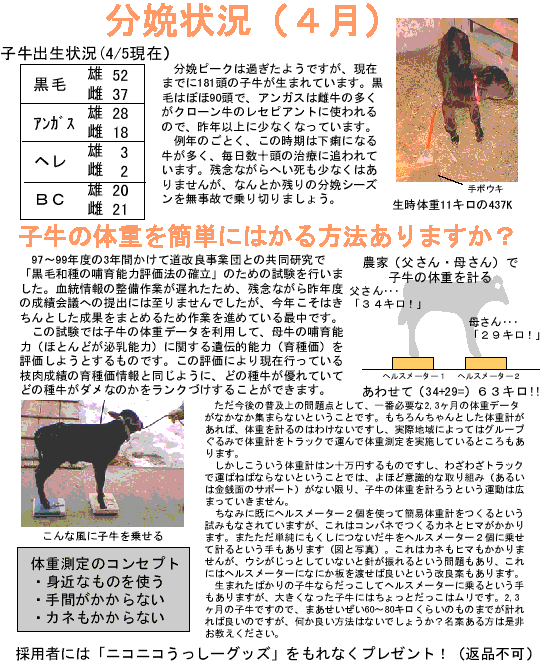 ・ 牛は放牧地で何をしているのか?No.120( 前半 ・ 後半 ) ・ 子牛の体重を簡単にはかる方法ありますか?