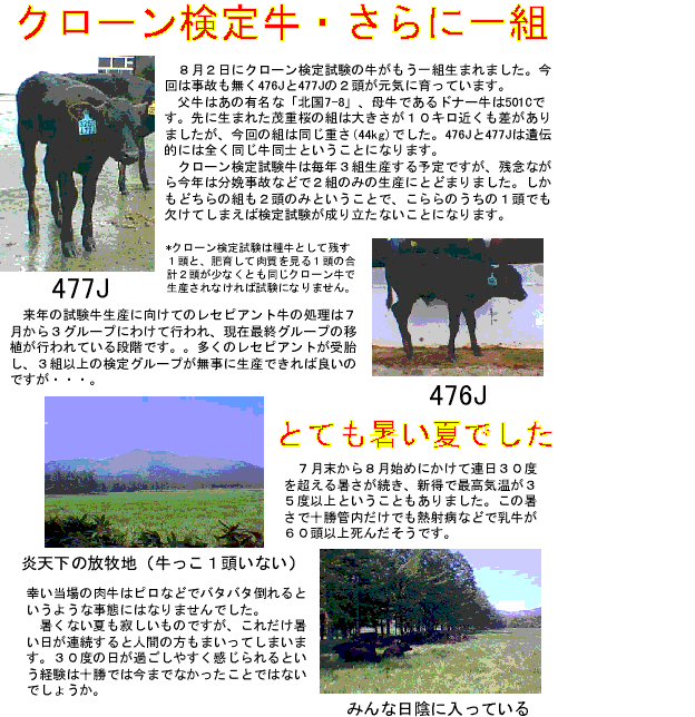 ・ クローンの最近の話題No.115( 前半 ・ 後半 ) ・ とても暑い夏でした