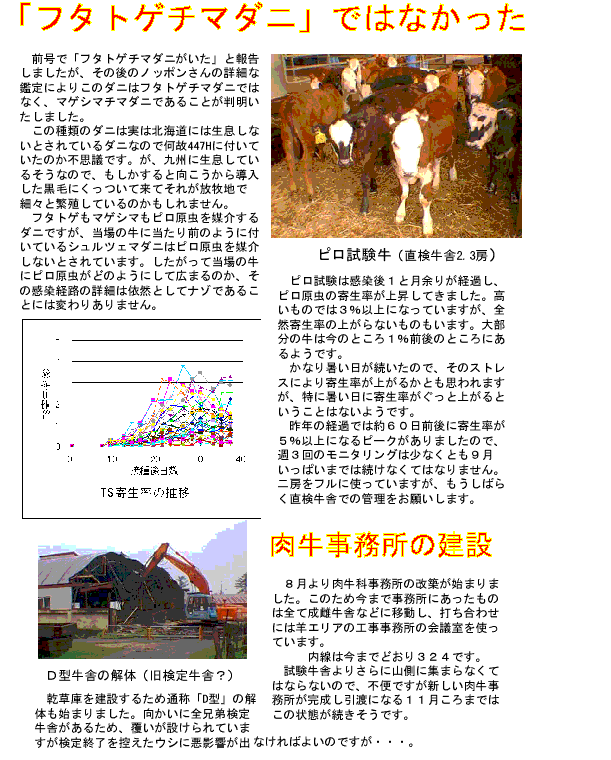 ・ 新しい事務所が完成!No.117( 前半 ・ 後半 ) ・ 99小型ピロ感染試験終了