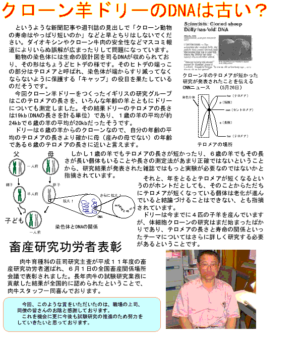 ・ フタトゲチマダニがいた!No.113 ・ クローン羊ドリーのDNAは古い?