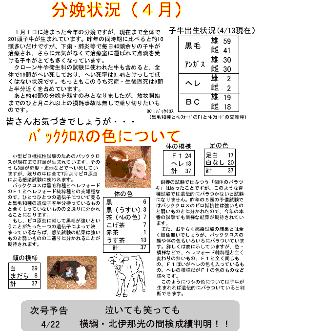 ・ 子牛の出生状況No.101 ・ スーパードナー牛導入される