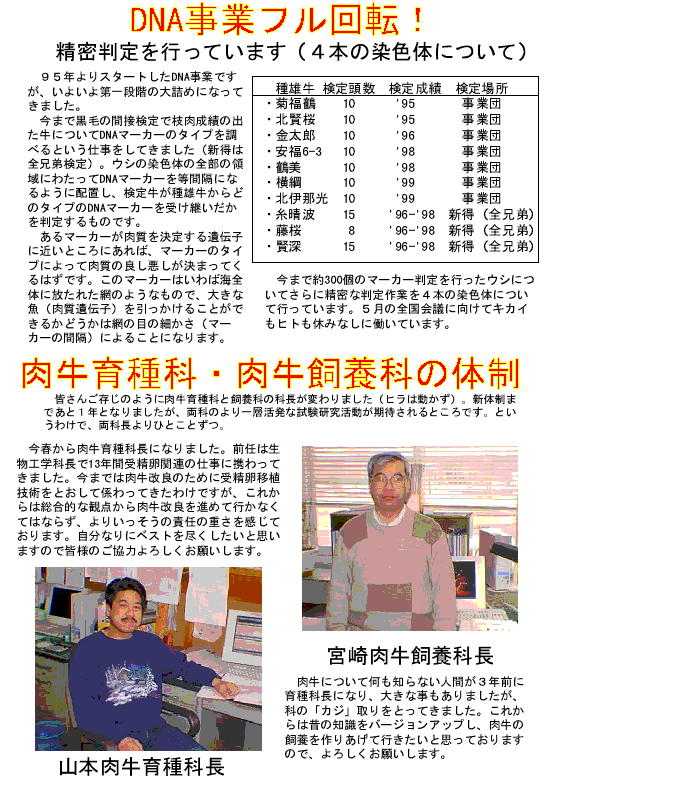 ・ こんなことやってます②DNAマーカーNo.6( 前半 ・ 後半 ) ・ 産地高度化事業(めす事業)2期目本格的に始動