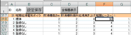 「暖房給湯電気ボイラ」の「詳細設定」画面を開き、「暖房ヒータ温度」を以下のように「90」に変更してください。