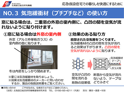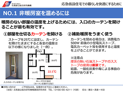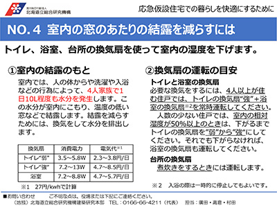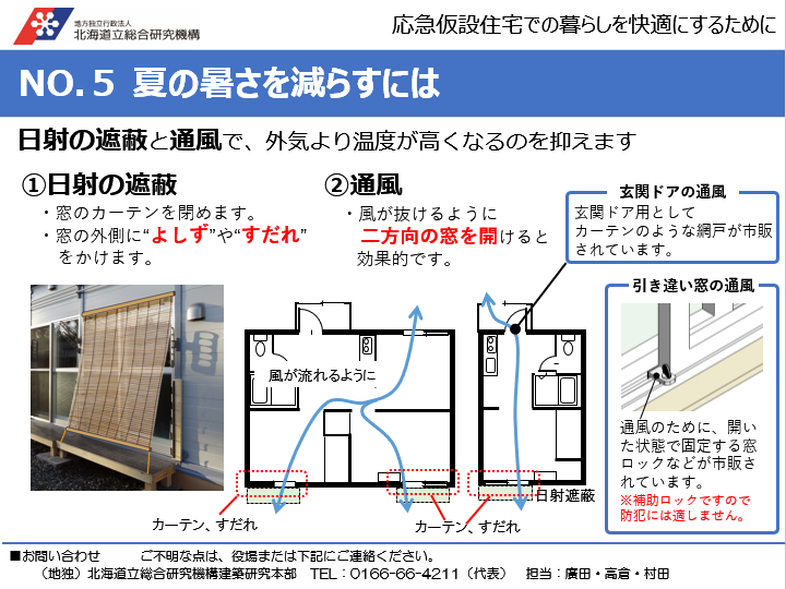 この度、運用段階として、入居者の方々ができる住まい方について資料「応急仮設住宅での暮らしを快適にするために」を作成しました。