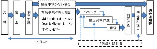 判定作業は受理順に行っており、判定を求められた日から起算してから14日以内に建築主等に審査結果を通知しています。
