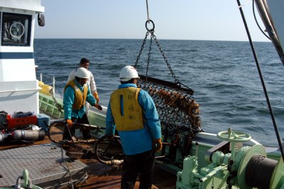 漁獲物の殆どが貝殻を付着基質としていることから、ホタテ貝殻を利用した新規漁場の底質改善事業が行われています。また、人工採苗試験も併せて行われています。