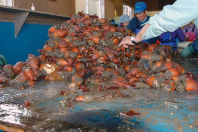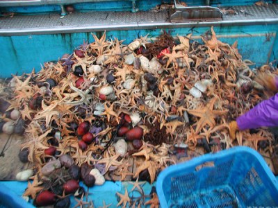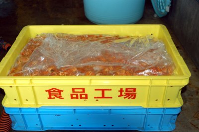 加工:漁家加工場でむき身にする前のアカボヤです。