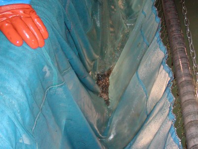 揚網1:敷き網をボンブで引き上げたところです。たくさんのイカナゴが見えてきました