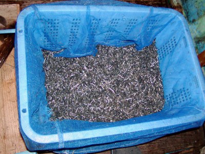 漁獲されたイカナゴ:混獲魚は随時取り除きます。