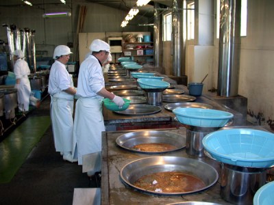 釜炊き2:ずらりと並んだイカナゴを炊く釜です。