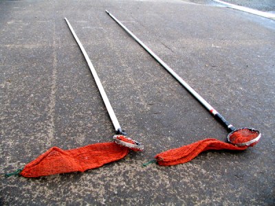たも網3:たも網を立てると身長の倍以上の長さのたもを扱います。