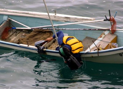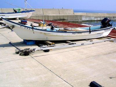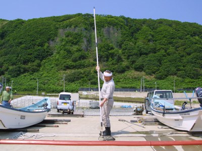| 漁船規模 | 船外機付磯舟0.3トン、(エンジン)25馬力以下 足で櫂(かい)を漕ぐ他にバッテリーで駆動するスラスター(小型船外機12V叉は24V)を装備  |