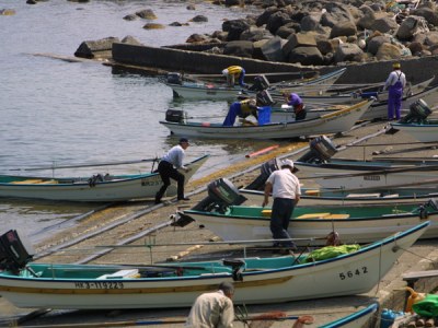 操業漁期中は島内各浜の代表者が協議して、島全体が凪の日に操業の実施を決定します。 操業時間は午前6時30分から9時までで、終了時間になると一斉に帰港します。採取したアワビは、サイズ毎に選別後一時的に蓄養し、後日決められた日に漁協の市場等に持ち寄り荷受けされ、主に本州方面に出荷されます。