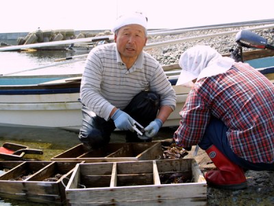 | 出荷形態 | 活貝(漁獲後3日間位港に蓄養し、決められた日時・場所で荷受け後出荷) 出荷サイズ;中:6.5センチメートル以上~7.5センチメートル未満、大:7.5センチメートル以上  |