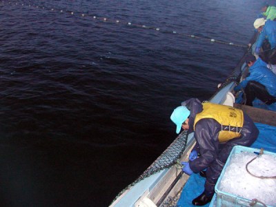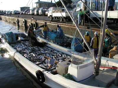 | 出荷形態 | 熱で変色しないように、魚を船に取り込んだら直ぐに氷をかける。帰港後、メスとオスに分け、出荷する。 |
