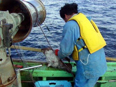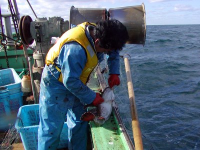 揚網3:網にかかったアンコウを素早くはずします、傷付けないよう慎重且つ大胆に!