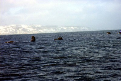 採取2:ウエットスーツを着用し覗きメガネでアカバギンナンソウを探します。