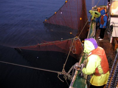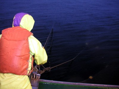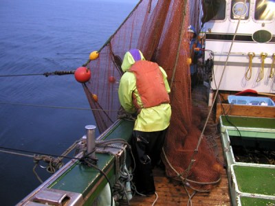 揚網8:網の中の漁獲物を確認しています。