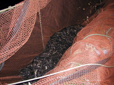 揚網3:タマリの網が上がってきました。