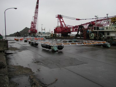 生け簀1:生け簀の枠体。外洋での養殖も考慮して試験用の施設を設置して耐久性を検討しています。